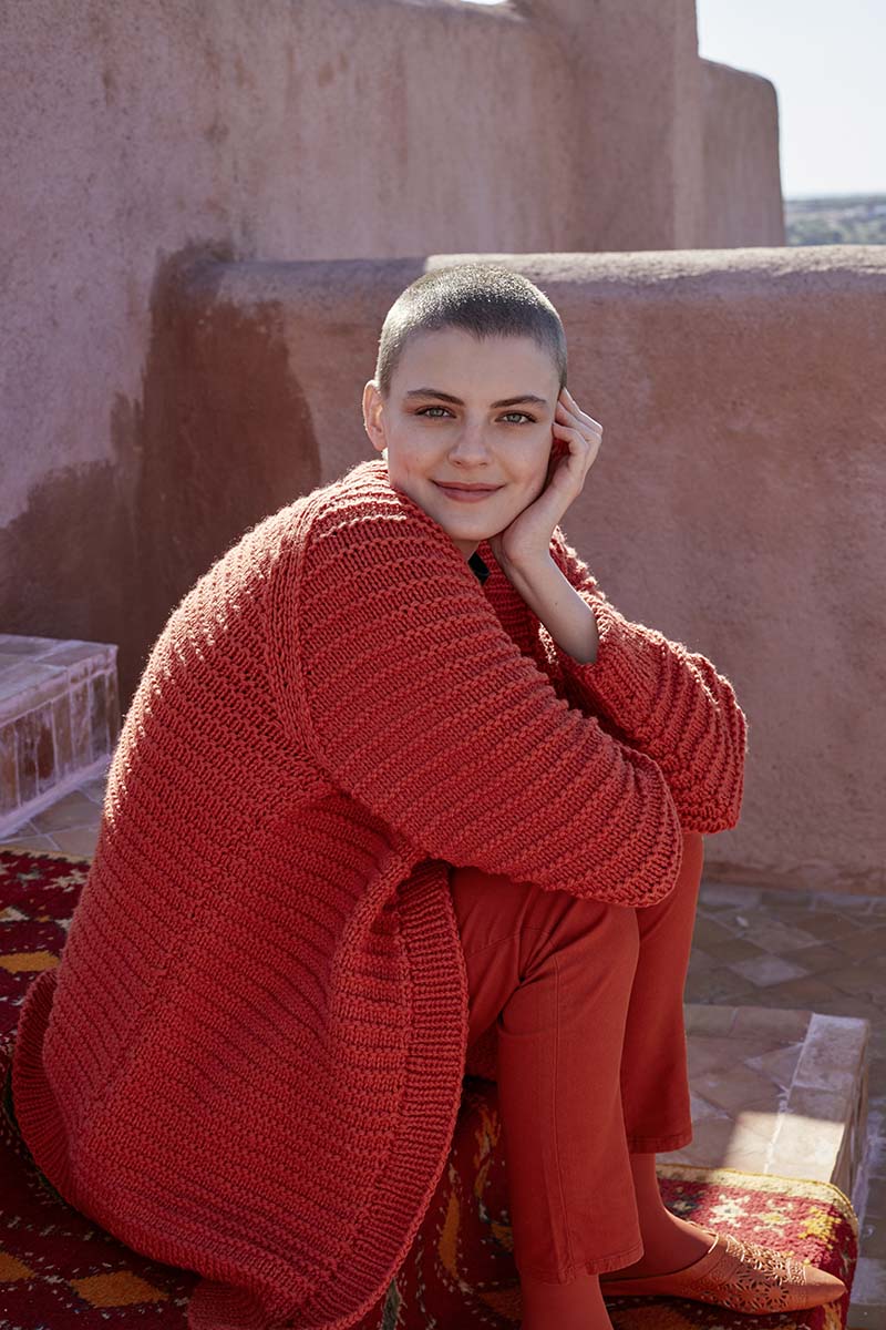 The only way you can glow is when your eyes smile as well. Surround yourself with other creative souls and create an unstoppable light. Share your ideas and create masterpieces together. Just like this perfect jacket. Knitting instruction in English, French, Dutch, German, Danish