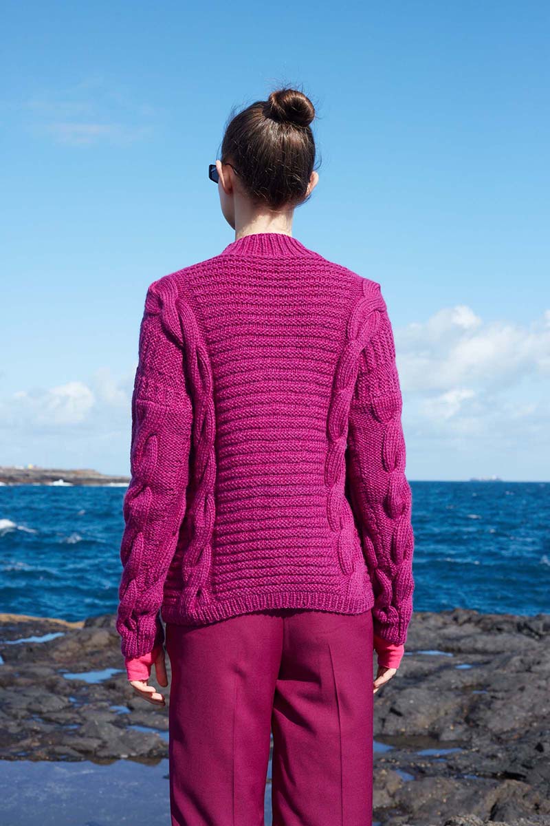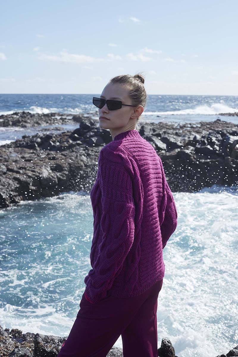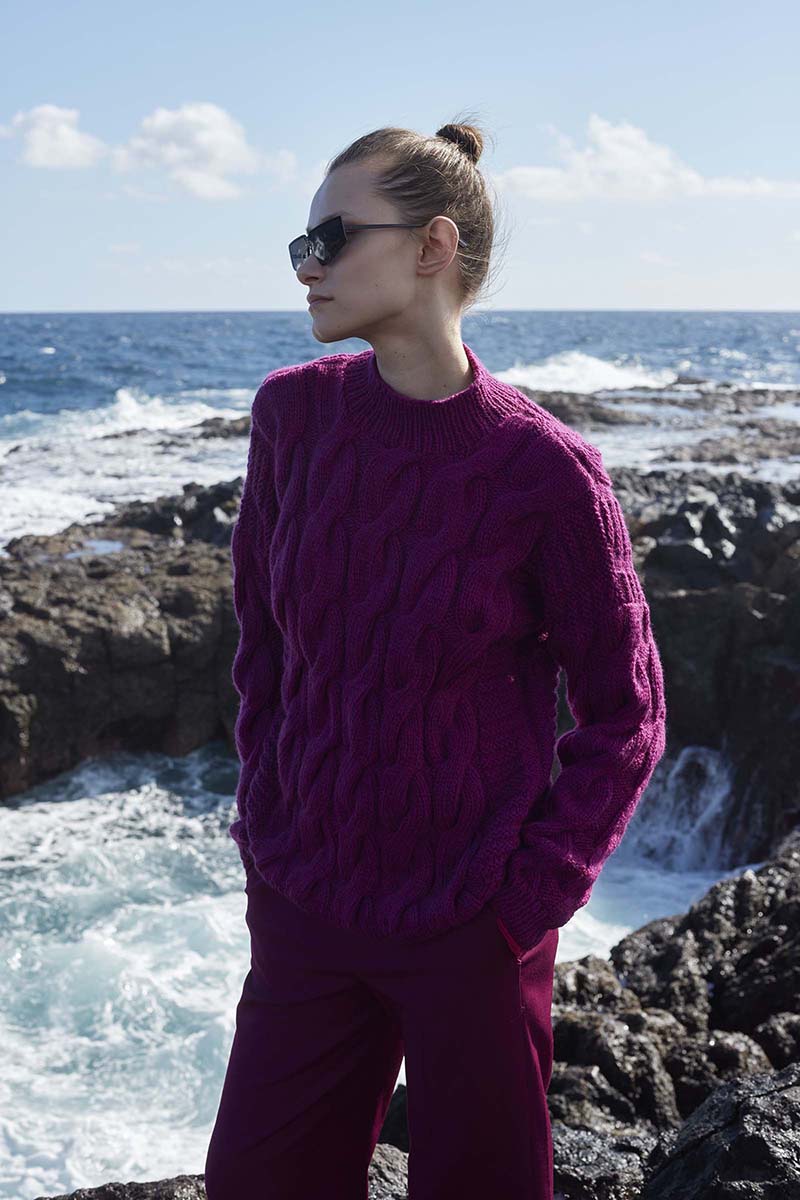 To the ocean I feel drawn. It is as if we are inseparable. I am a child of the ocean, it was love at first sight. Just like this sweater. The front and back of the sweater are different just like ebb and flow. Beautiful cables that seem to flow on and remind you of high waves. While the back of the sweater has a soft and comfortable ribbed stitch that reminds you of calming waves.
