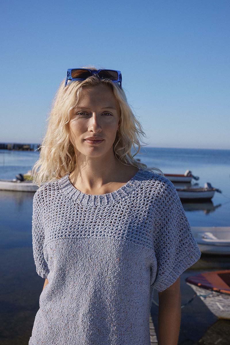 Tweed für den Sommer! COTTON TWEED vereint einen butterweichen Griff mit rustikaler Optik und ist ideal für sommerliche Strickprojekte. Das Garn besteht aus zwei miteinander verzwirnten Fäden: einem einfarbigen Grundfaden und einem Faden mit bunten Tweed-Noppen aus Seide. Diese Kombination verleiht dem Garn eine besonders lebendige Struktur.
